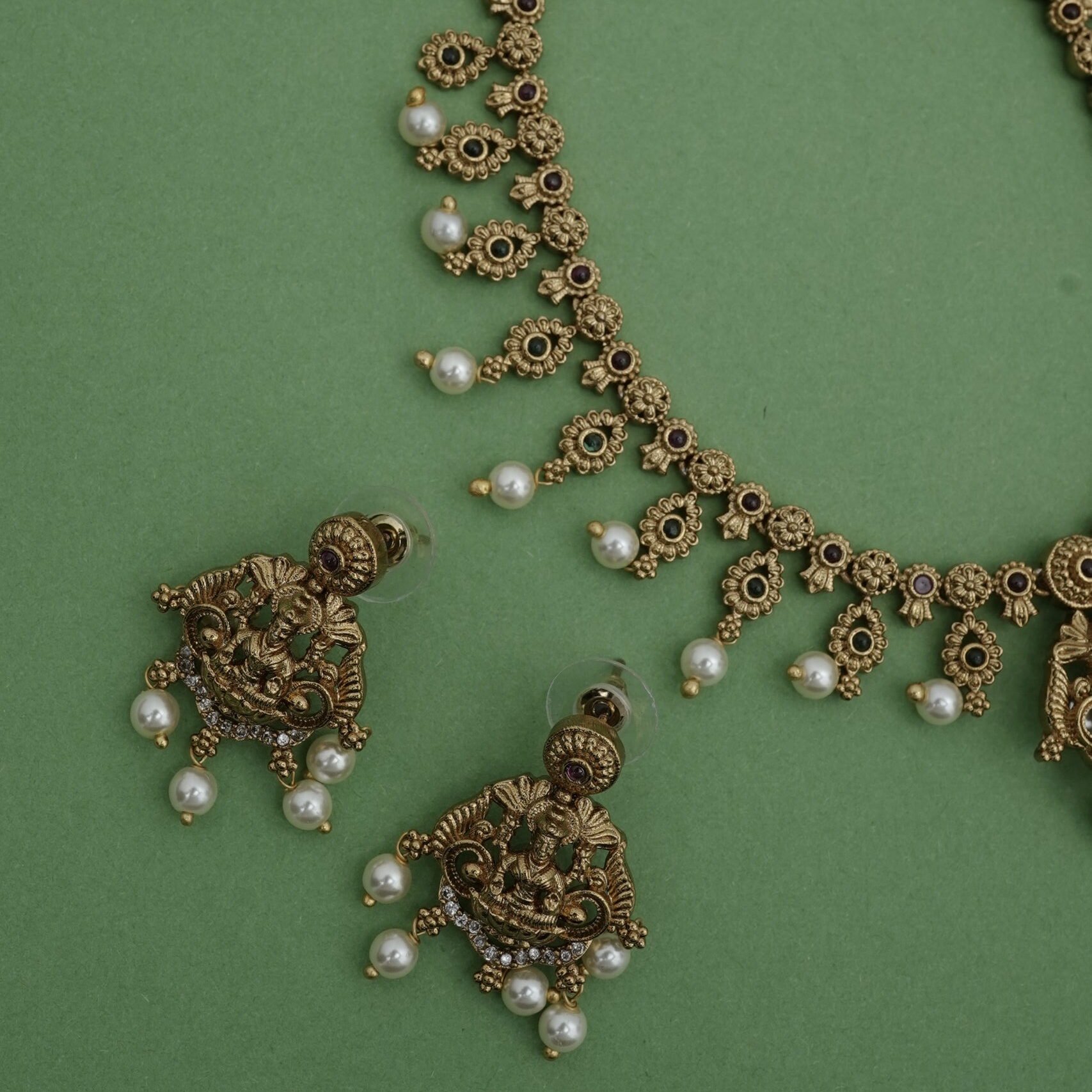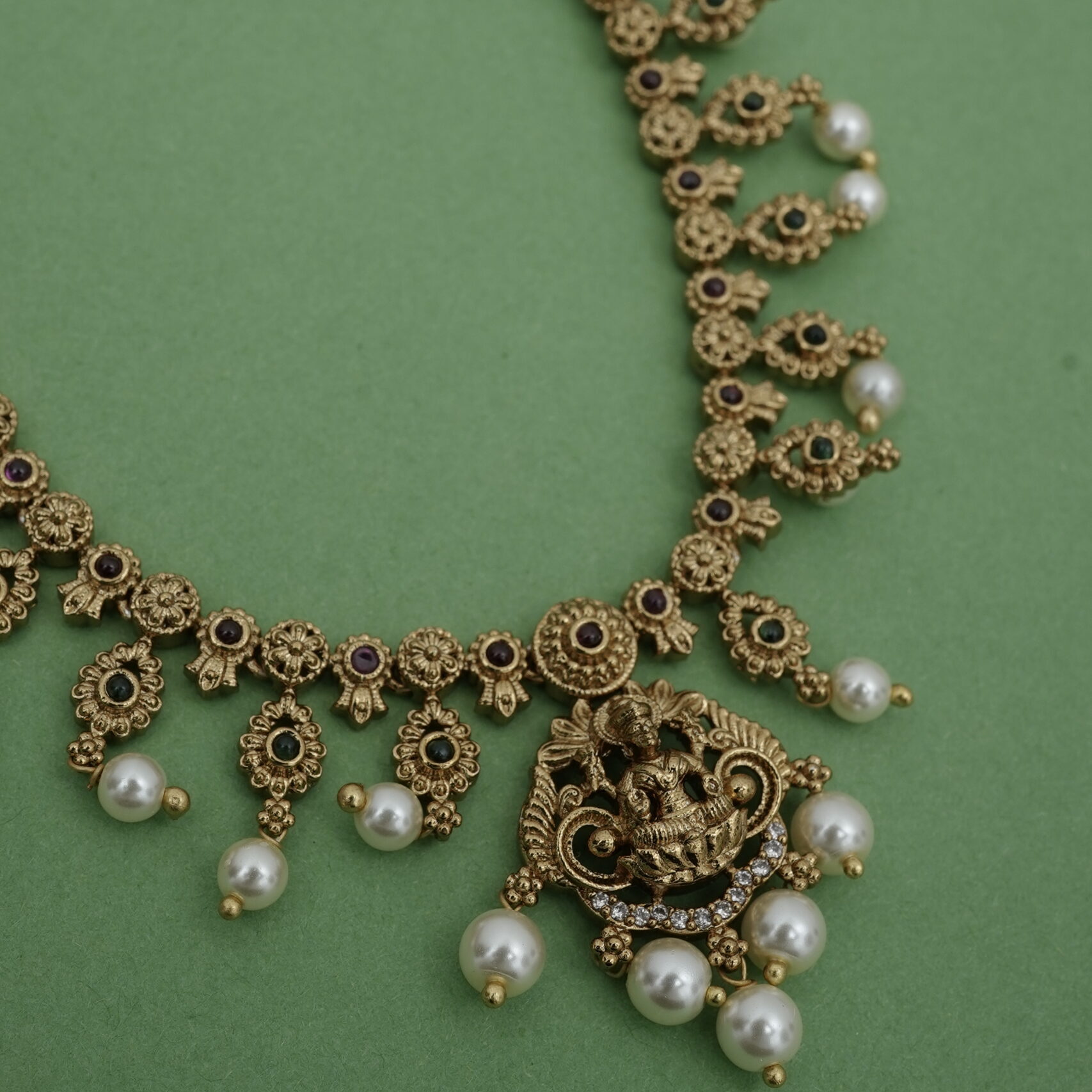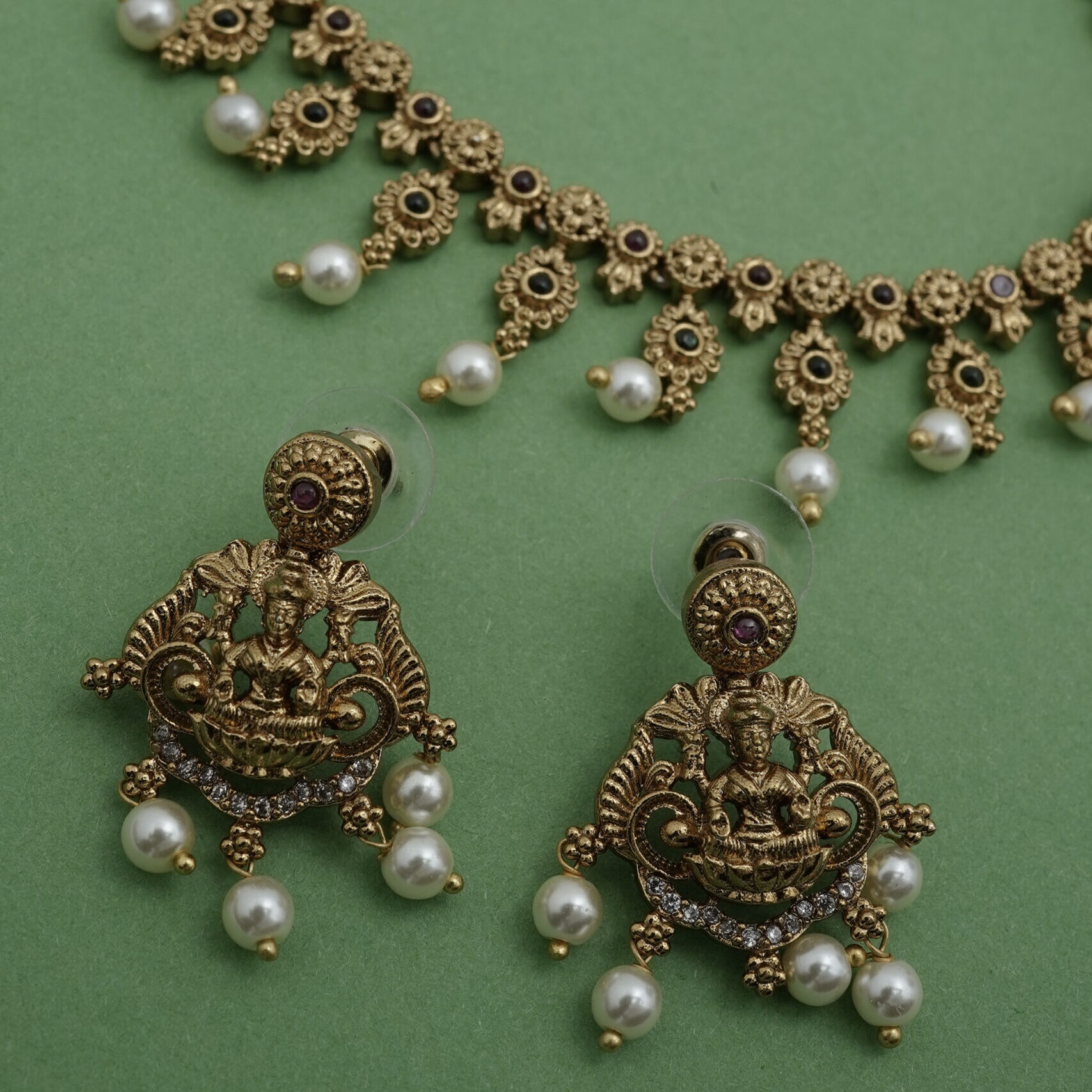Antique Gold-Tone Lakshmi Motif Necklace Set