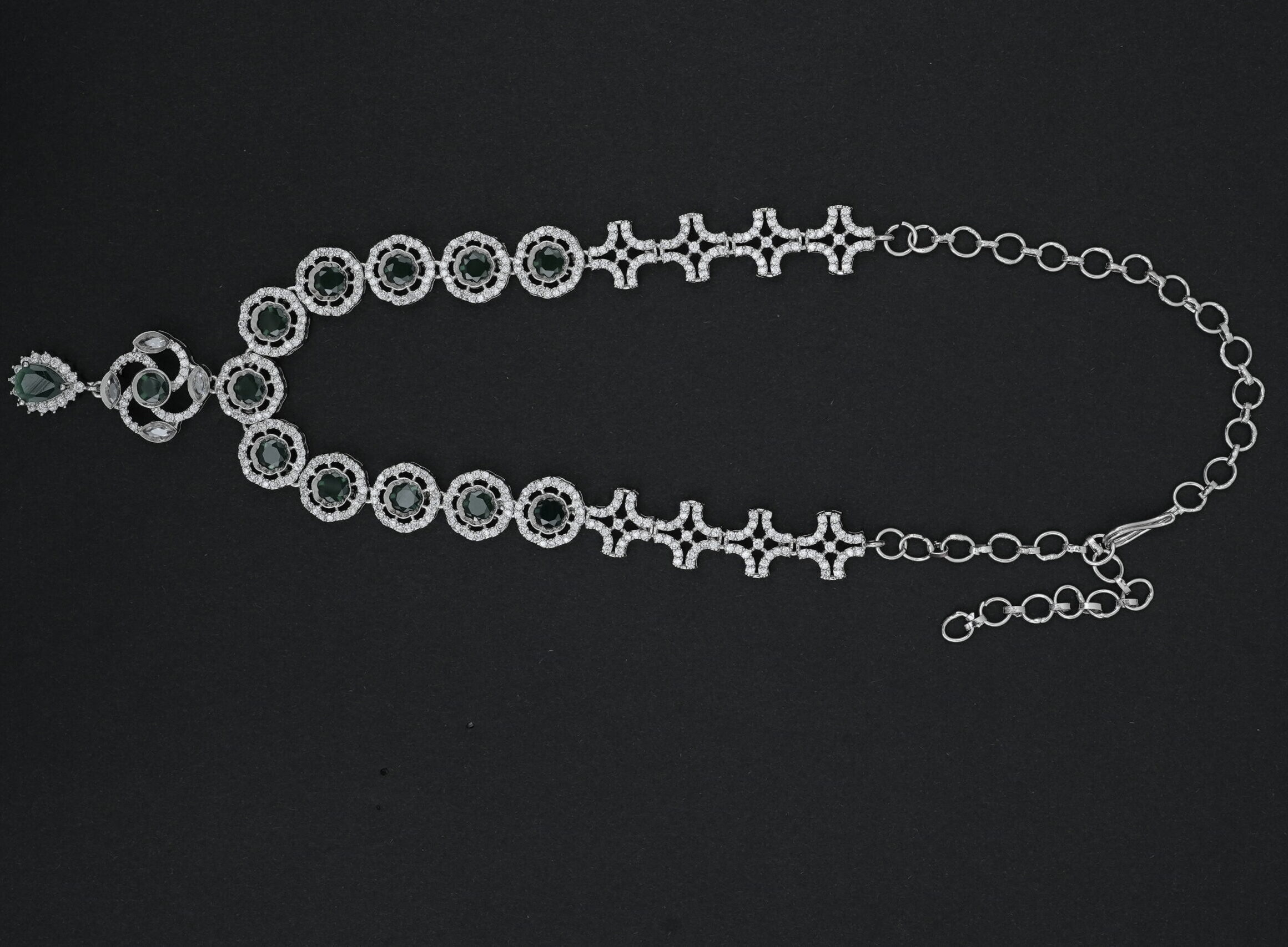 Green Stone & CZ Rhodium-Tone Necklace Set